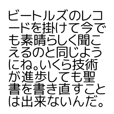 ビートルズのレコードを掛けて今でも素晴らしく聞こえるのと同じようにね。いくら技術が進歩しても聖書を書き直すことは出来ないんだ。