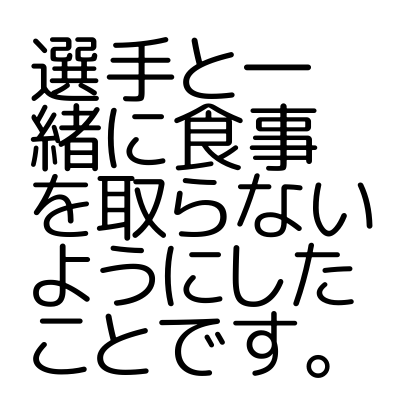 選手と一緒に食事を取らないようにしたことです。