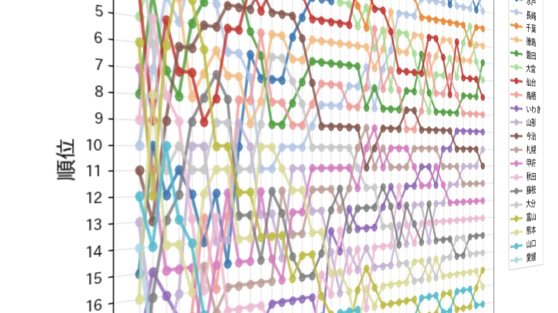 J2順位推移グラフ(2025年) X Facebook はてブ LINE コピー 2025.11.292026.03.16 J2の最終節が終わりました。 1位水戸と2位長崎となりJ1への昇格が決まりました。 前半は首位を独走していた千葉は失速し最終順位は3位となりました。どれか一つ引き分けていれば自動昇格でした。