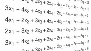 Python NumPyで連立方程式を解く方法 Pythonで連立方程式を解く方法はいくつかありますが、今回はNumPyを使った方法を書きます。8元連立方程式を解いてみます。4x1+2x2+3x3+3x4+2x5+3x6+4x7+2x8=262x1+3x2+2x3+2x4+4x5+2x6... 2023.09.01 Python